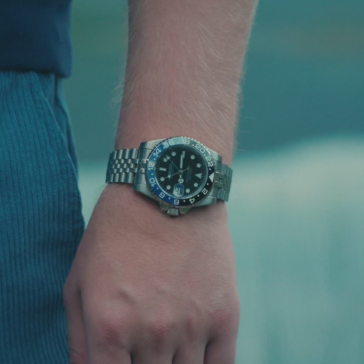 Inspired by the iconic GMT design and powered by the renowned Seiko NH34 automatic movement, we proudly introduce the Seiko Mod GMT. This 40 mm timepiece represents the perfect blend of high-end quality and accessibility, offering exceptional craftsmanship at an attainable price.