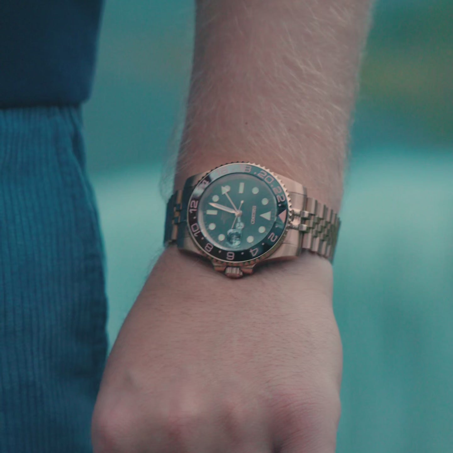 Inspired by the iconic GMT design and powered by the renowned Seiko NH34 automatic movement, we proudly introduce the Seiko Mod GMT. This 40 mm timepiece represents the perfect blend of high-end quality and accessibility, offering exceptional craftsmanship at an attainable price.