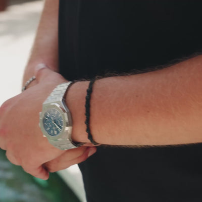Each watch comes in a fancy leather watch box. And that's not all, every purchase includes a free dust bag and toolkit with a guide to help you adjust your watch strap for a perfect fit.